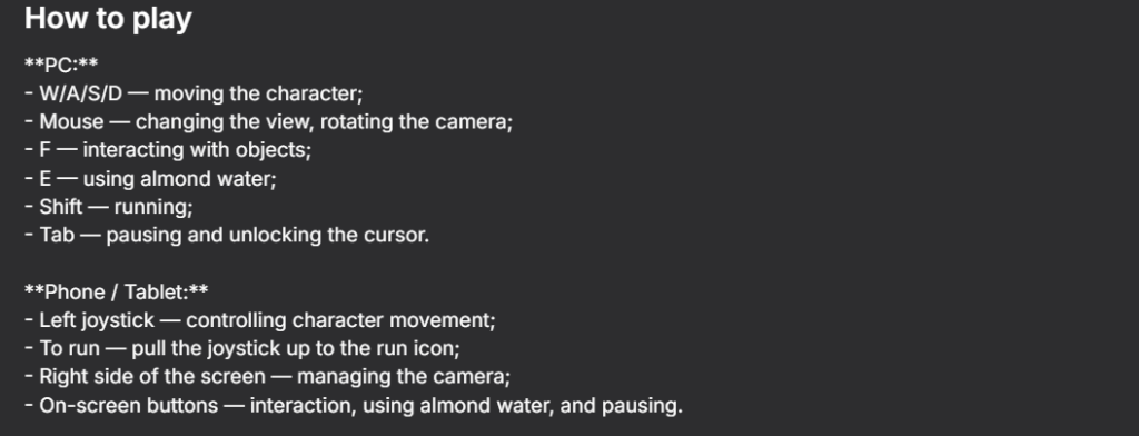 There are no scripted jumpscares and no clear instructions—only atmosphere, sound, and the slow realization that you’re not meant to leave the Lost Floor. Progress comes from observation, patience, and interpreting subtle environmental clues while avoiding things that should never have learned how to walk the halls.
